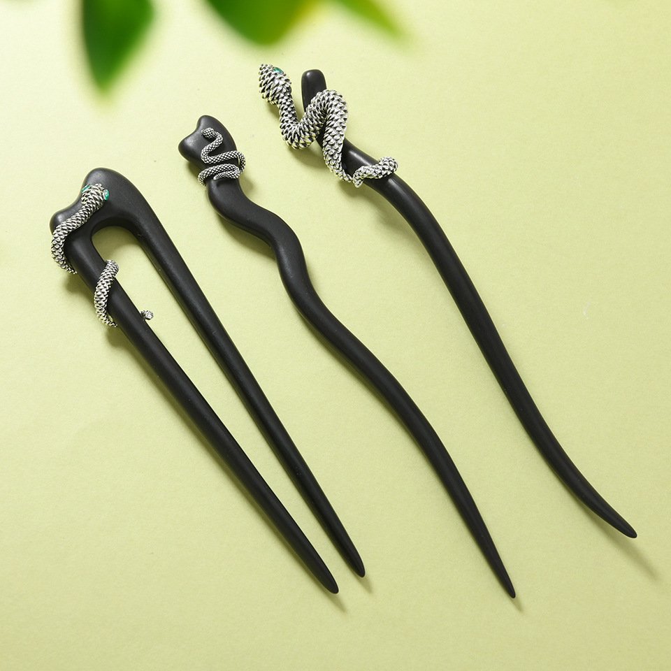 オリジナルの紅檀蛇口国潮黒檀木かんざしの創意がおかしいです。