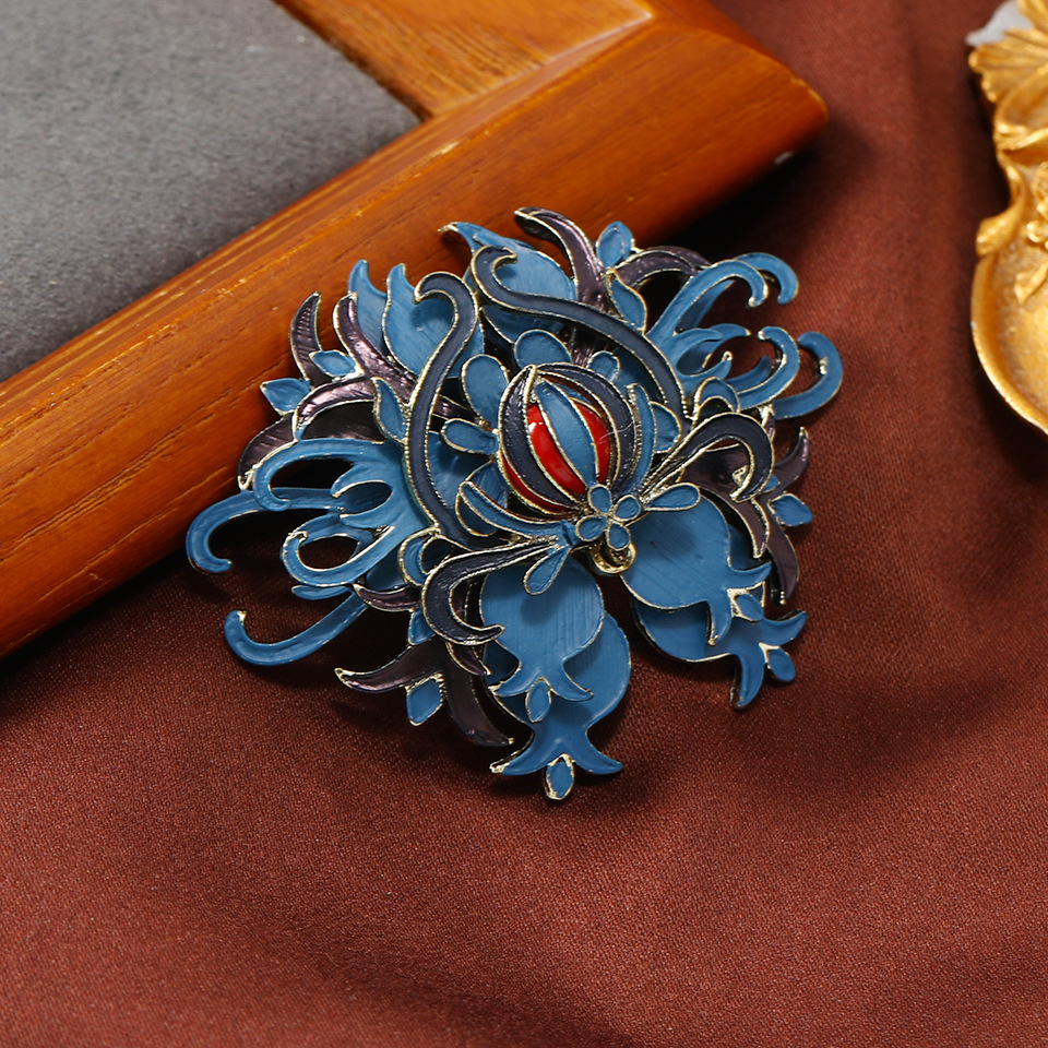 中国風インディゴ花模造点翠ブローチ復古民族チャイナドレスセーター男女ブローチ胸花高級装飾品