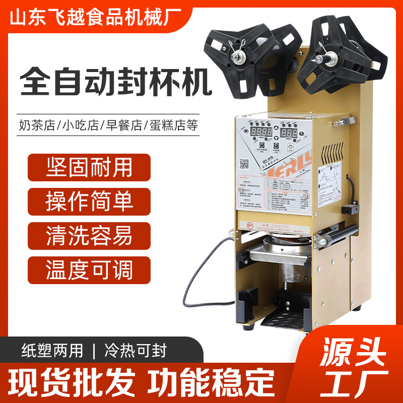 全自動ミルクティー店封口機商用紙プラスチックカップ汎用冷熱豆乳飲料コーヒー手動封杯機