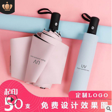 Uv防晴傘両用8骨折りたたみ黒ゴム日傘三つ折日よけ卸売広告傘ロゴ