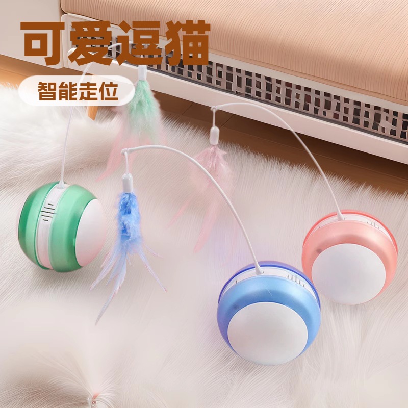 ペットのおもちゃは猫の棒の羽を笑わせます。