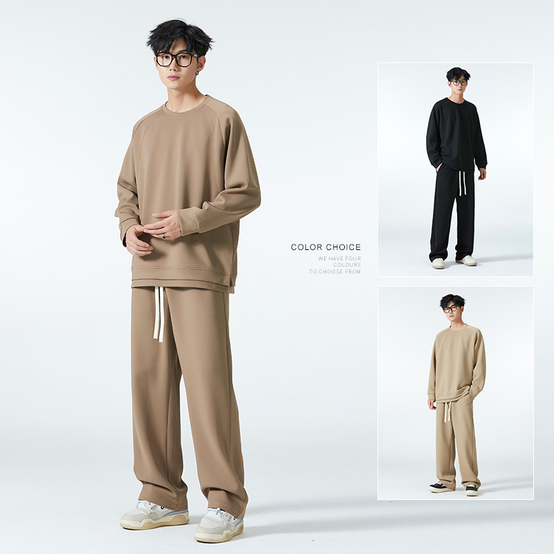 秋のレジャースポーツスーツの男性服セット春秋冬の純色の丸首カバーの韓国版のゆったりしたスポーツウェア
