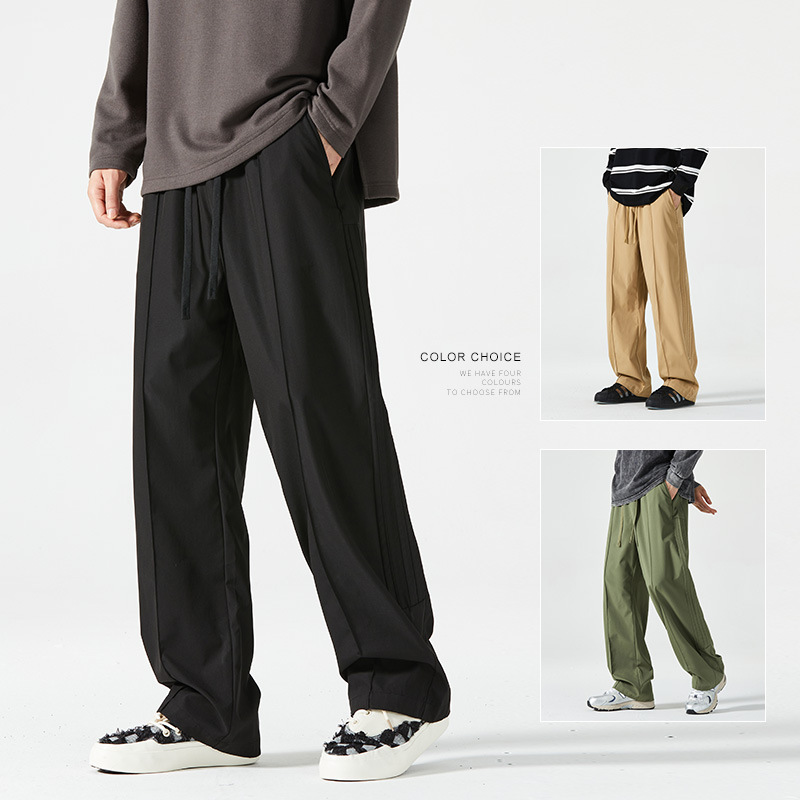 日本のファッションズボンの男性の秋の新型のまっすぐな筒のゆったりしているカジュアルなズボンの男性の純色の百合は腰のスーツのズボンを緩めます。