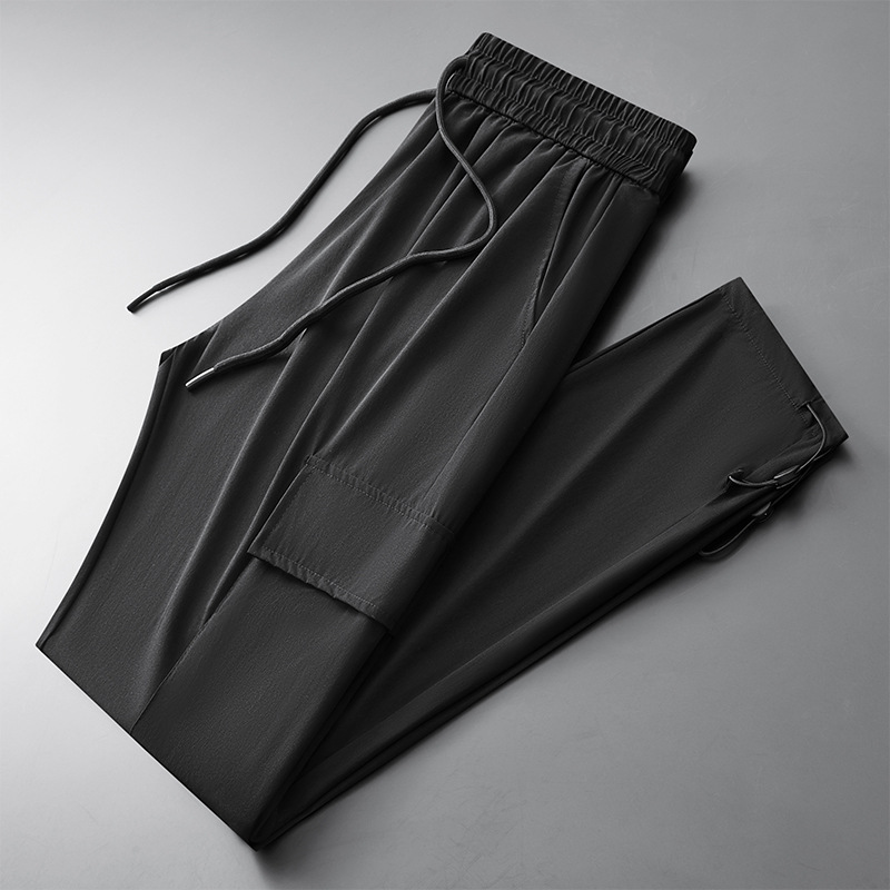 2024夏の氷糸の薄いタイプのスポーツズボンの男性の直筒のゆったりとした弾力性の無アイロンのカジュアルなズボンの男性の速乾性のズボン
