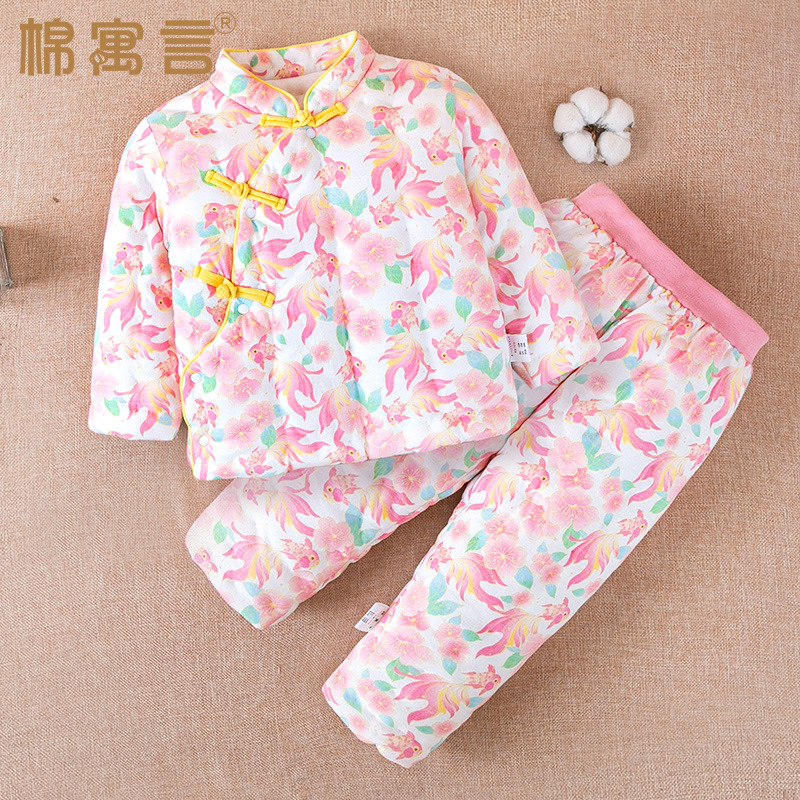 赤ちゃんの手作り綿入れのズボンセットは冬の国風の純綿を厚くします。