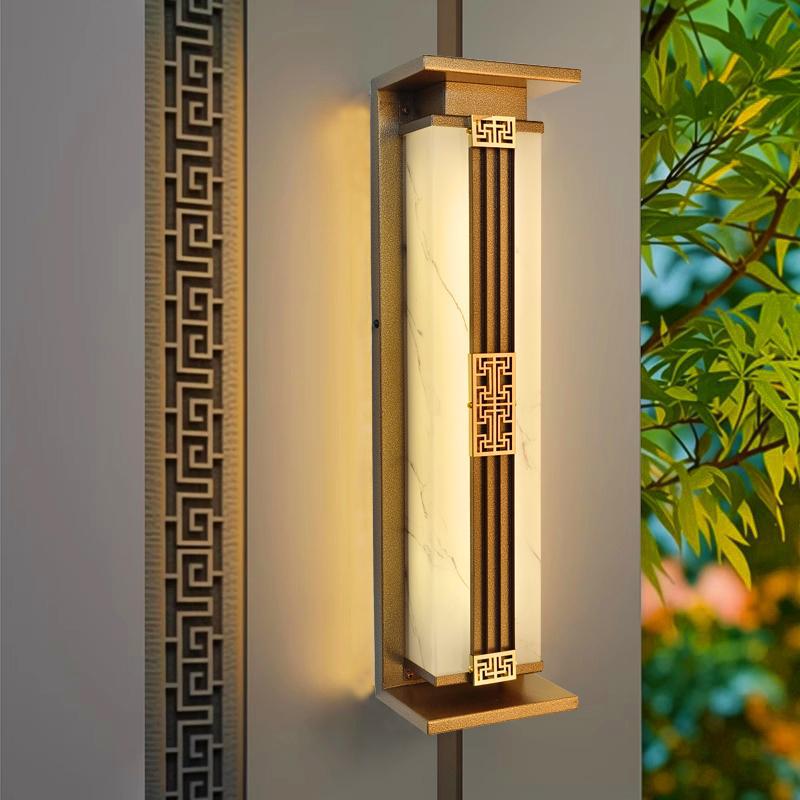 ソーラー屋外ウォールランプシンプルな模造大理石ヴィラ中庭バルコニー屋外ロングゲート両側柱ランプ