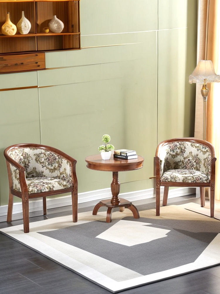 ホテルラウンドチェアコーヒーテーブル3点セット無垢材ラウンドチェアシングルラウンドチェアレジャーチェア商談テーブルと椅子寝室客室