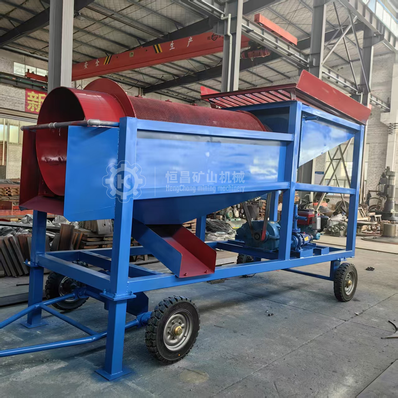 アフリカの砂金鉱山の大量出荷、金採掘車、移動式ディーゼル動力の小型金鉱山泥石ふるい洗浄装置