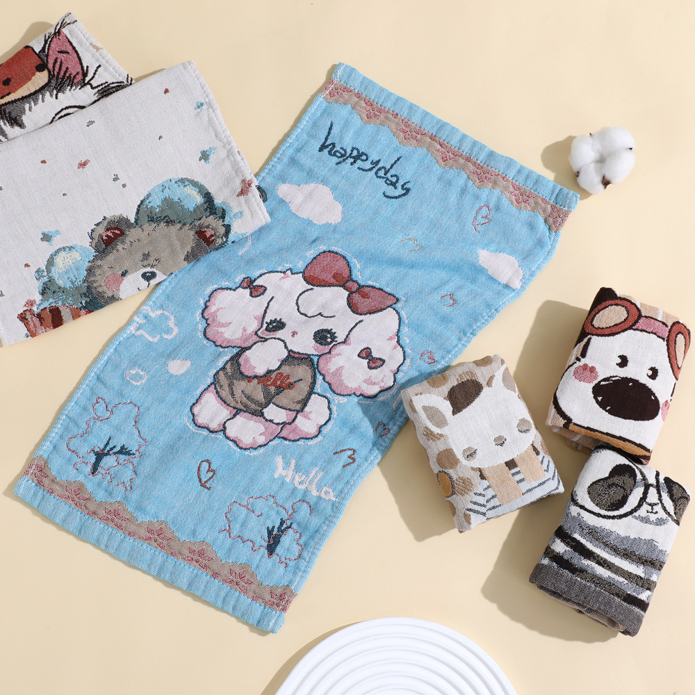 ベビーガーゼ小さなタオル 4 4 層綿ガーゼ漫画プリント子供タオルベビー洗顔 25*50 エッジ洗顔タオル