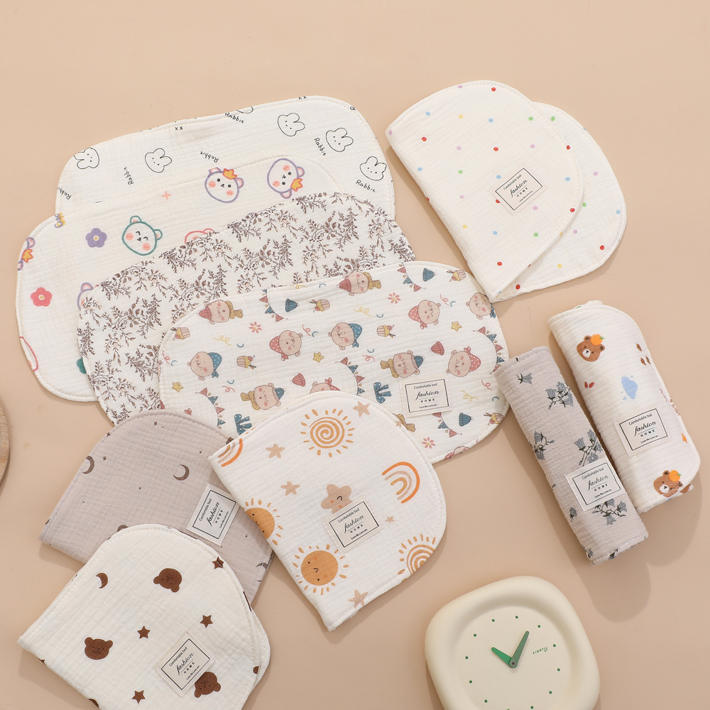 新生児雲片枕2層ガーゼ漫画通気性吐乳防止枕パッド赤ちゃん平枕タオル0-12月