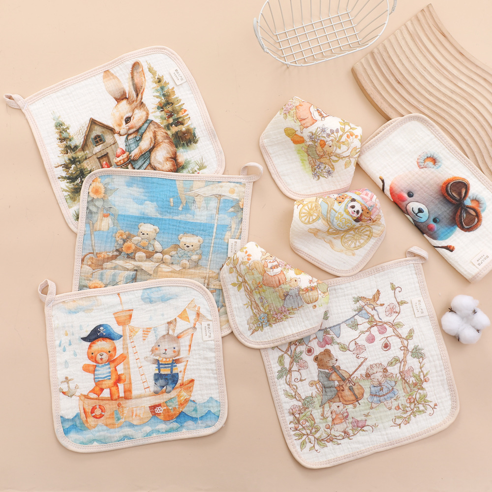 子供4層ガーゼ顔拭きタオル赤ちゃんよだれタオルA類赤ちゃんタオルハンカチ柔らかい吸水洗顔タオル