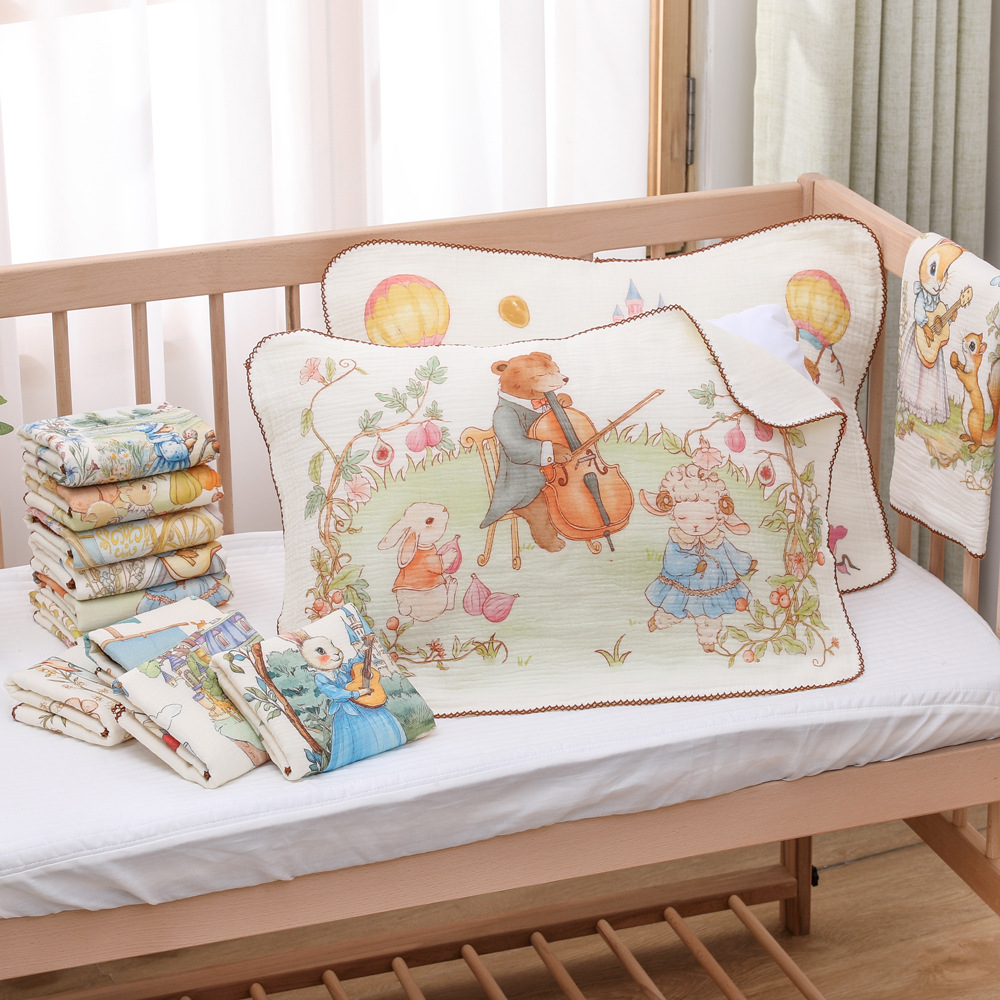 子供用デジタルプリント漫画枕タオル赤ちゃんガーゼ綿枕カバー柔らかい快適吸汗通気性赤ちゃん枕カバー