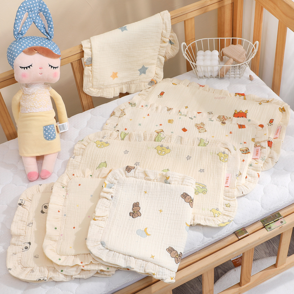 乳幼児用ガーゼ枕タオルベビーフラット枕通気性吸汗フラット枕新生児枕面フリル子供用枕