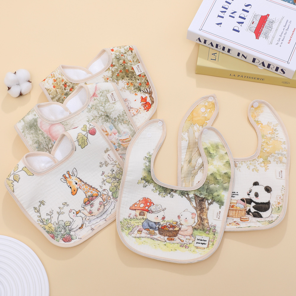 三角タオル子供よだれタオル4層綿ガーゼ柔らかい吸水赤ちゃんタオル赤ちゃん幼稚園の口