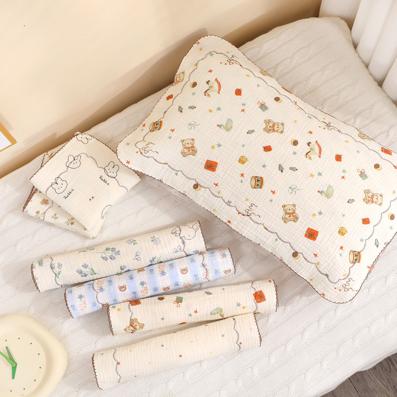 乳幼児4層ガーゼ枕タオル綿質漫画赤ちゃん枕タオル汗を吸う通気性吐乳防止枕クッションタオル
