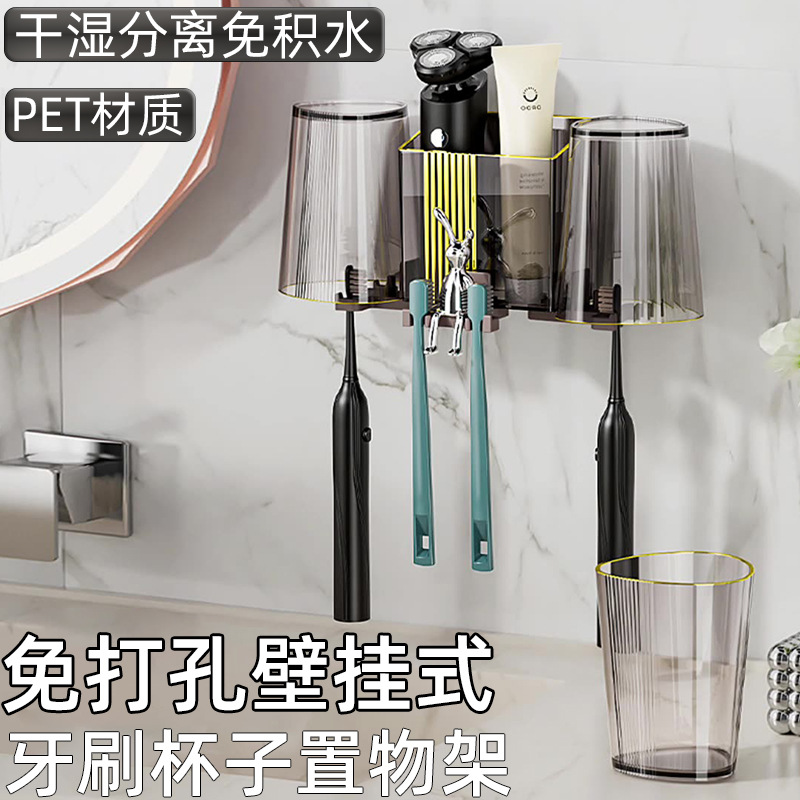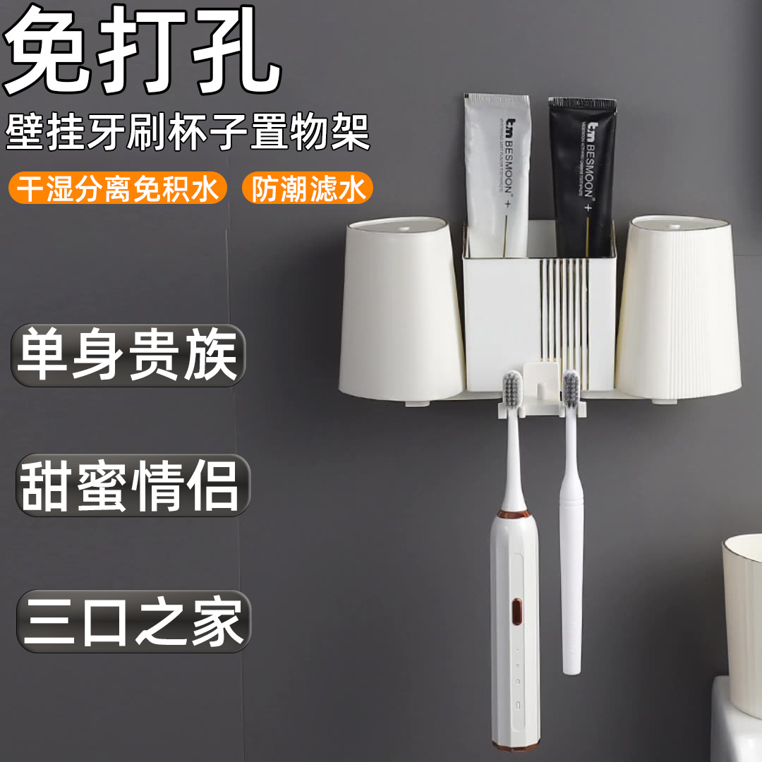 穴なし歯ブラシホルダー軽くて豪華な歯ブラシカップトイレうがいカップホルダー壁掛け式歯磨き粉収納棚セット