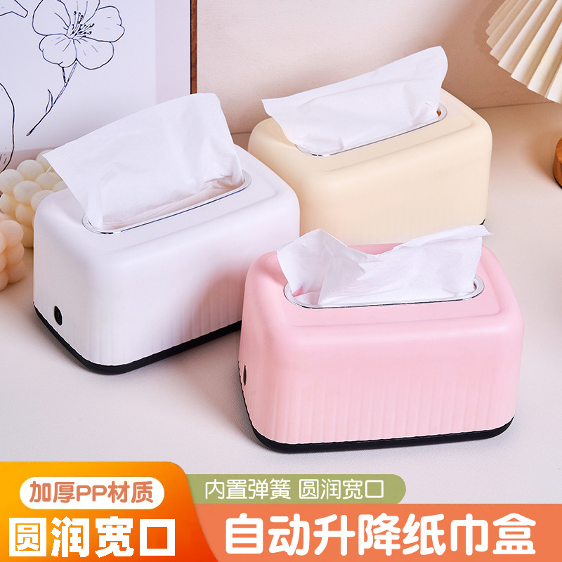 引き出し式ティッシュボックススプリング付き自動昇降デスクトップ引き出し紙箱家庭用リビングナプキンプラスチック収納ボックス