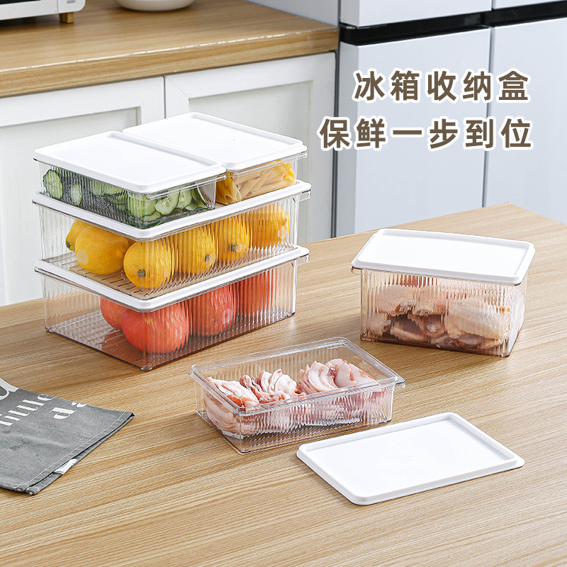 冷蔵庫食品収納ケース家庭用キッチンカバー付き密封保冷箱果物野菜冷凍透明プラスチック分注ケース