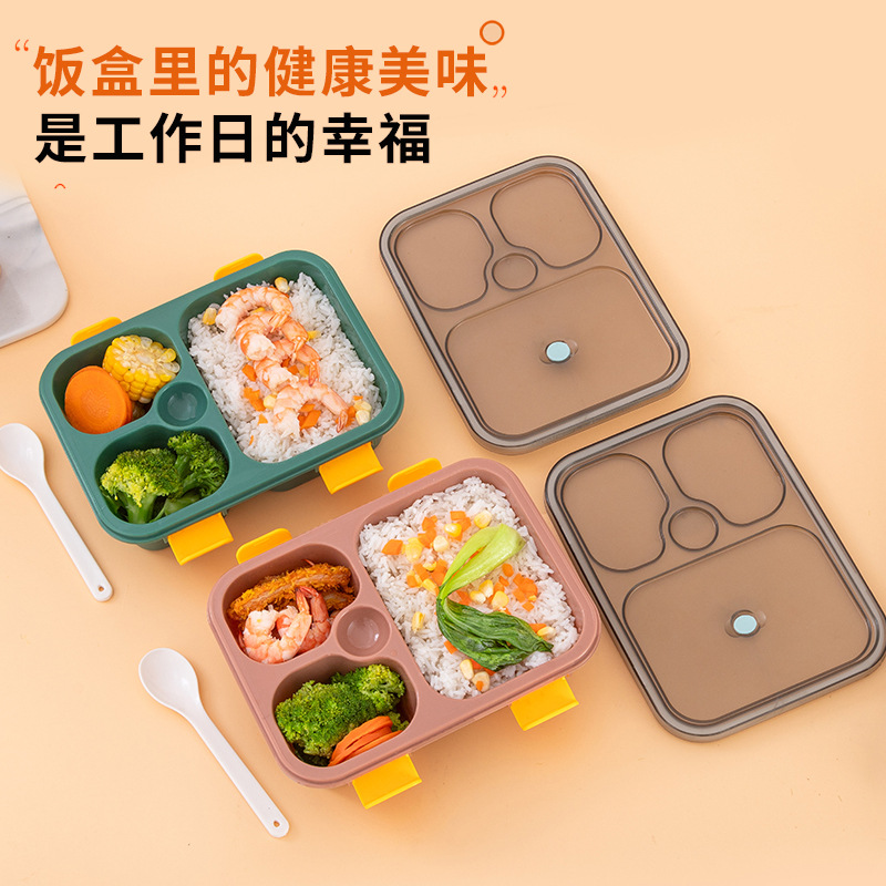 新型密封分格弁当箱電子レンジ加熱可能三格ランチボックススプーン付き大容量学生弁当箱