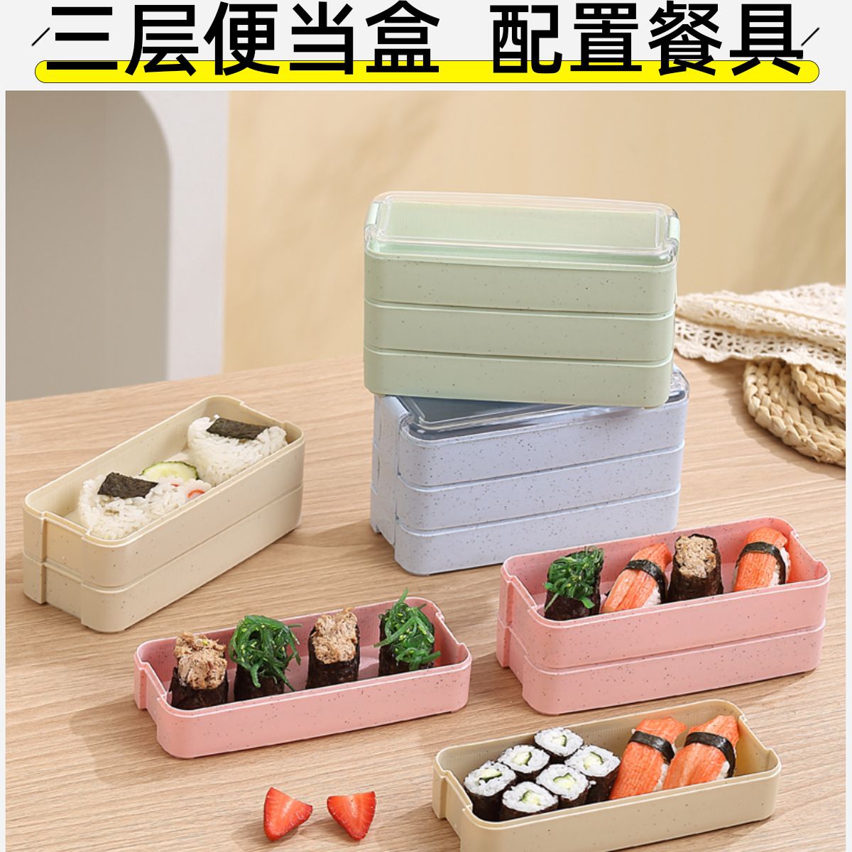 日本式三層密封弁当箱電子レンジ加熱軽食弁当箱食器付き学生プラスチック弁当箱クロスボーダー