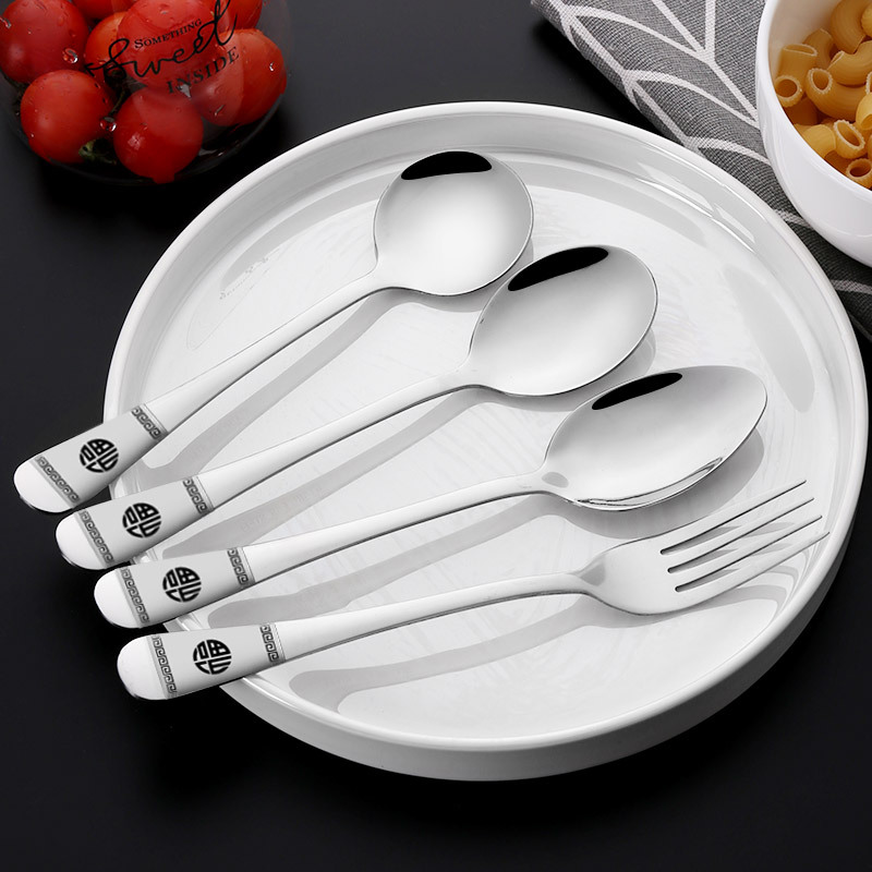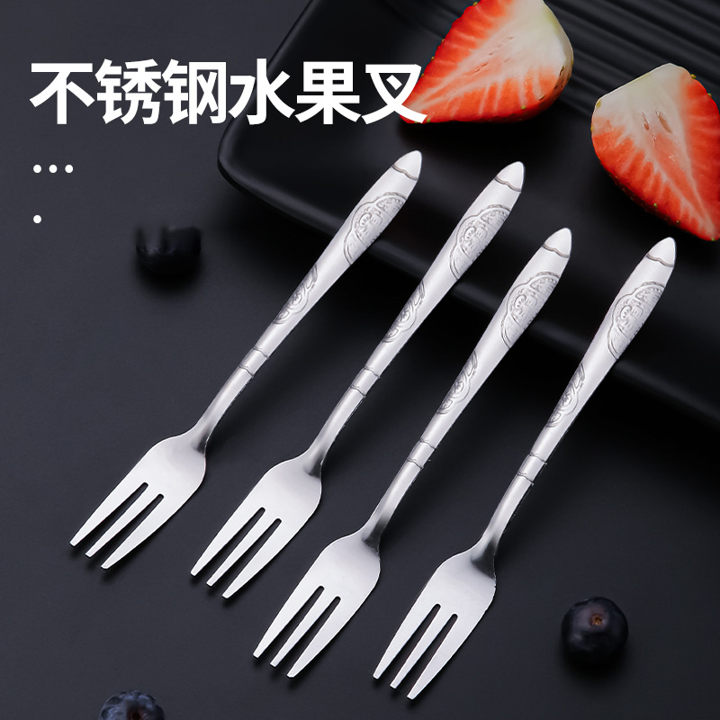 中国式ステンレススプーン家庭用レーザー福字果物フォークスプーンは食事スプーンのデザートフォーク食器を厚くする