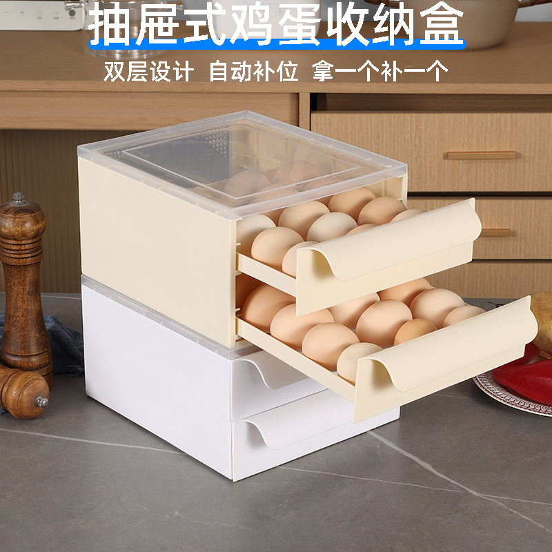 引き出し式卵収納ケース自動補位二重卵鮮度保持ケース創意滑り台式冷蔵庫卵棚卵ホルダー