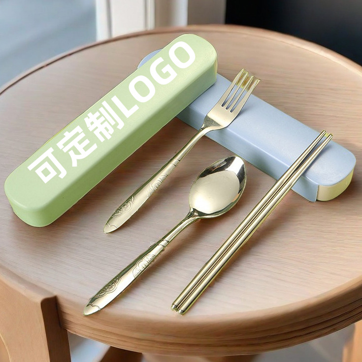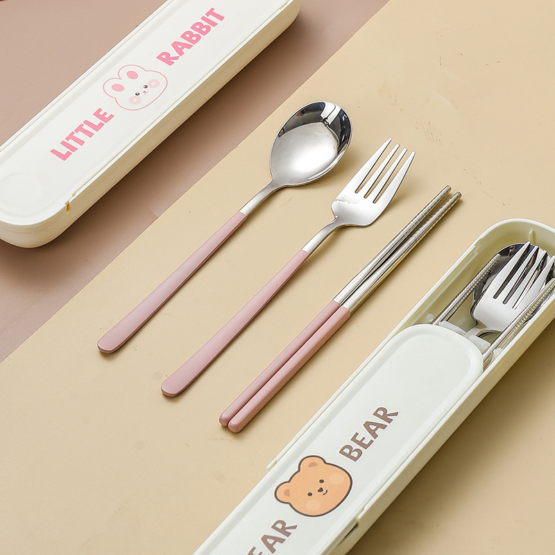 304ステンレス携帯食器アニメ学生フォークスプーン箸三点セットサラリーマンスプーンフォーク食器セット