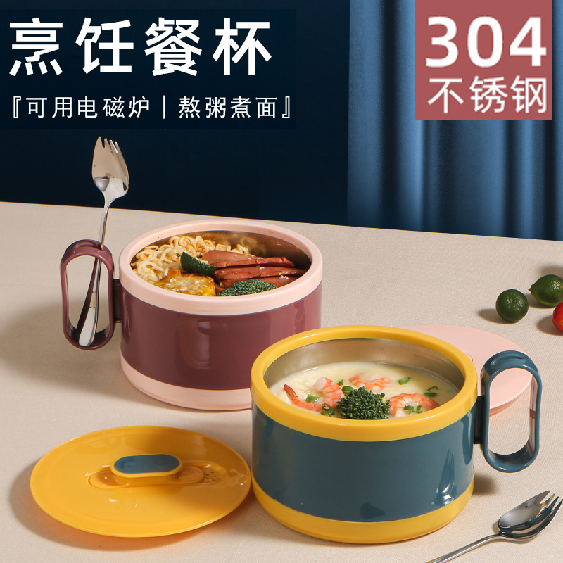 304ステンレスの泡の碗の家庭用蓋の電磁ストーブの加熱の弁当箱は水を切ることができます。