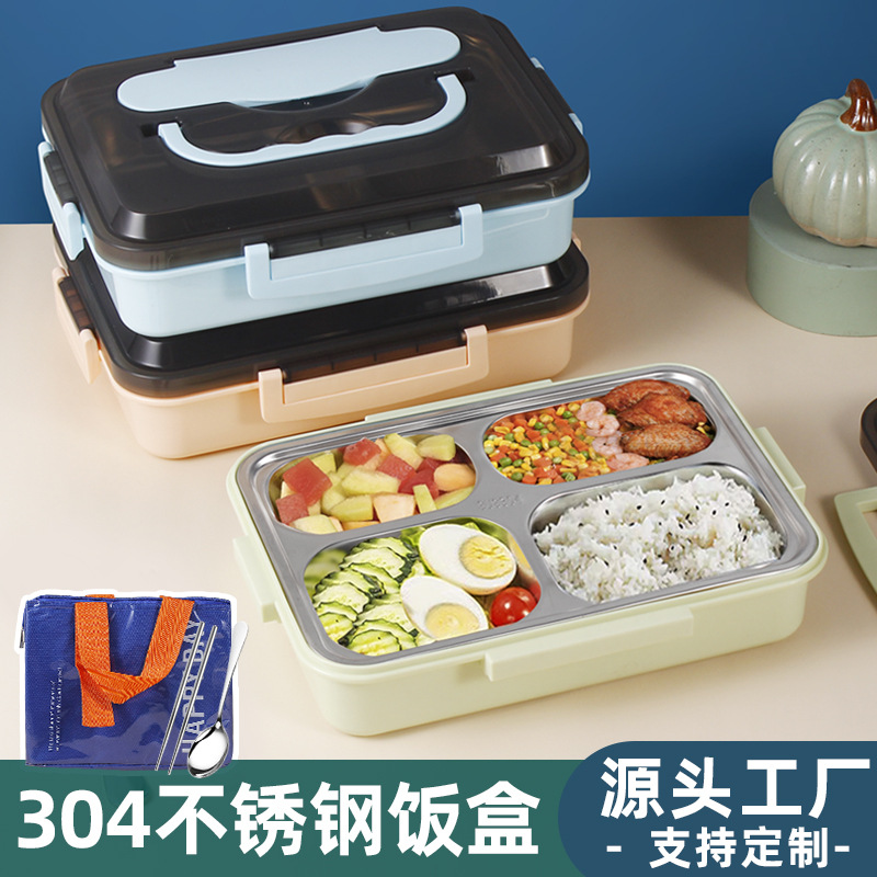 304ステンレス弁当箱2/3/4格食器保温弁当箱付き学生サラリーマン分格密封弁当箱