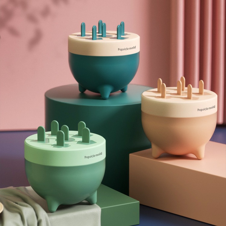 クリエイティブ六格アイスキャンデーボックス家庭用diy自作かわいいアイスキャンデーアイスクリームボックスハンドル付きプラスチックアイスクリーム金型