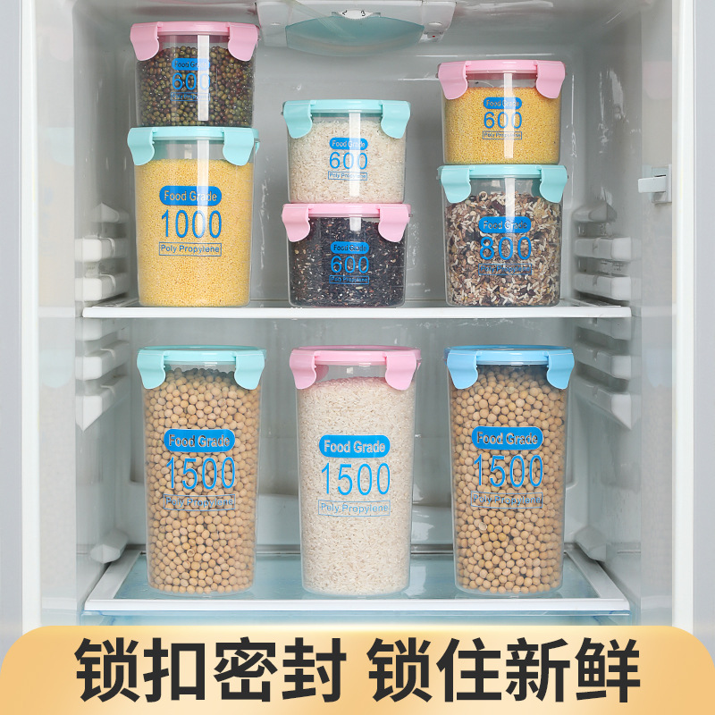 透明プラスチック密封缶厨房防湿五穀雑穀収納缶冷蔵庫食品保存箱スナック収納缶