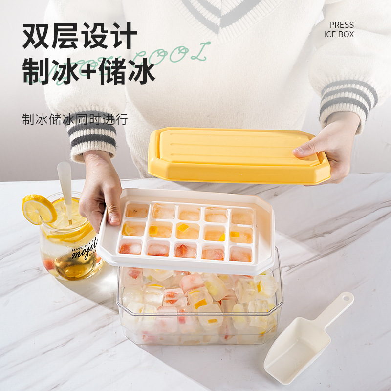 家庭用プッシュ式アイスボックス二重大容量アイスブロック金型蓋付き密封自作角型製氷箱