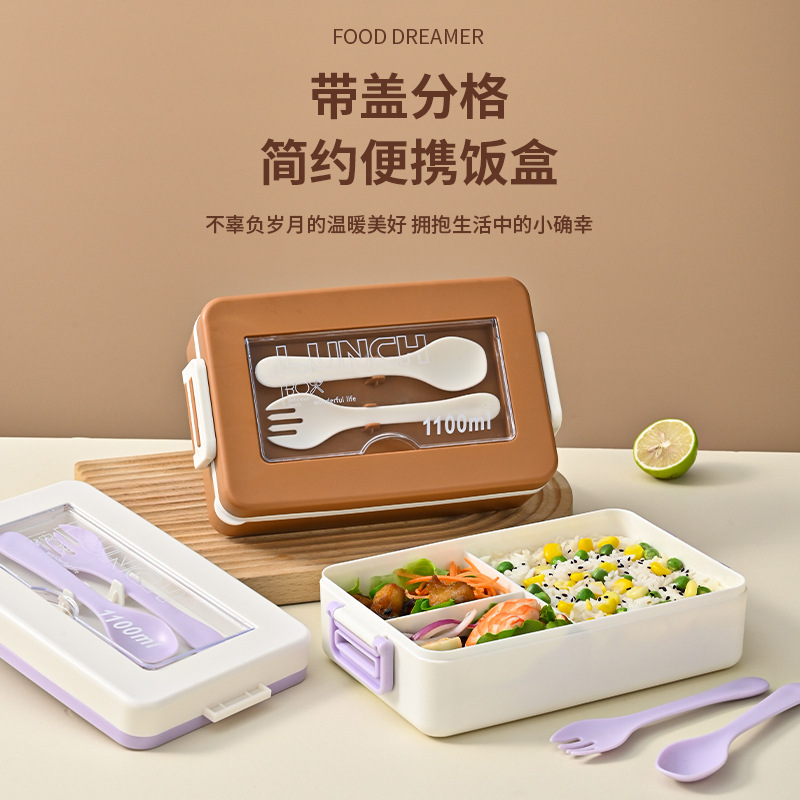 シンプルな携帯型弁当箱電子レンジは食器付きの三段弁当箱を持っています。学生の大容量のプラスチック弁当箱です。