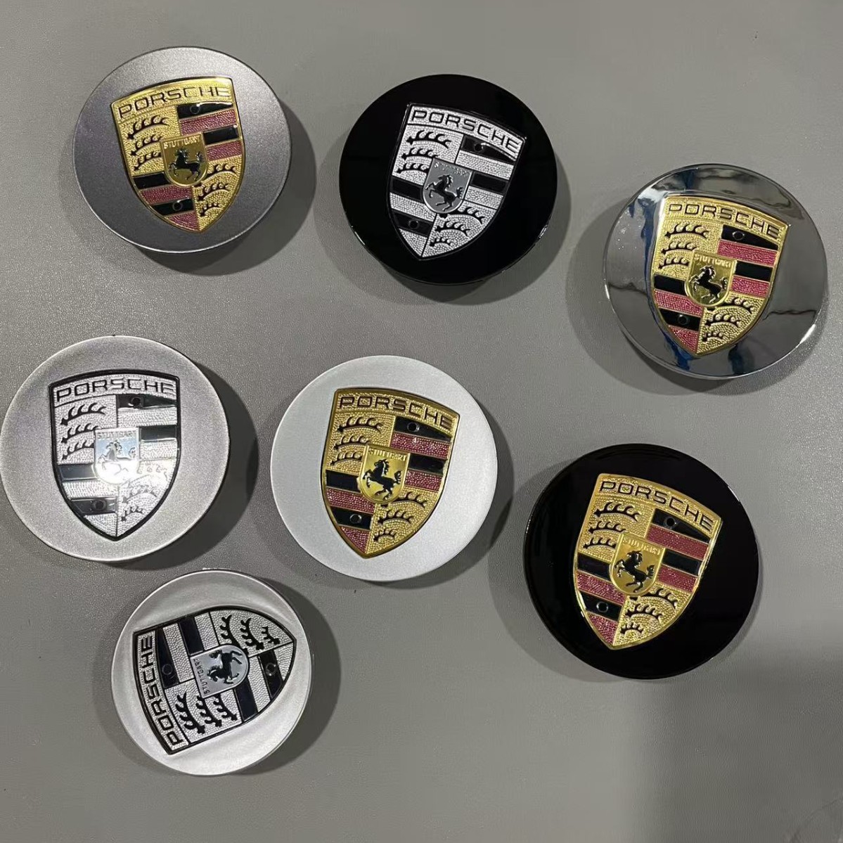ポルシェオリジナルホイールハブカバーセンターカバー各シリーズ76MM65MMエレガントブラックブライトシルバーマットシルバーグレーカラーラベルに適しています。