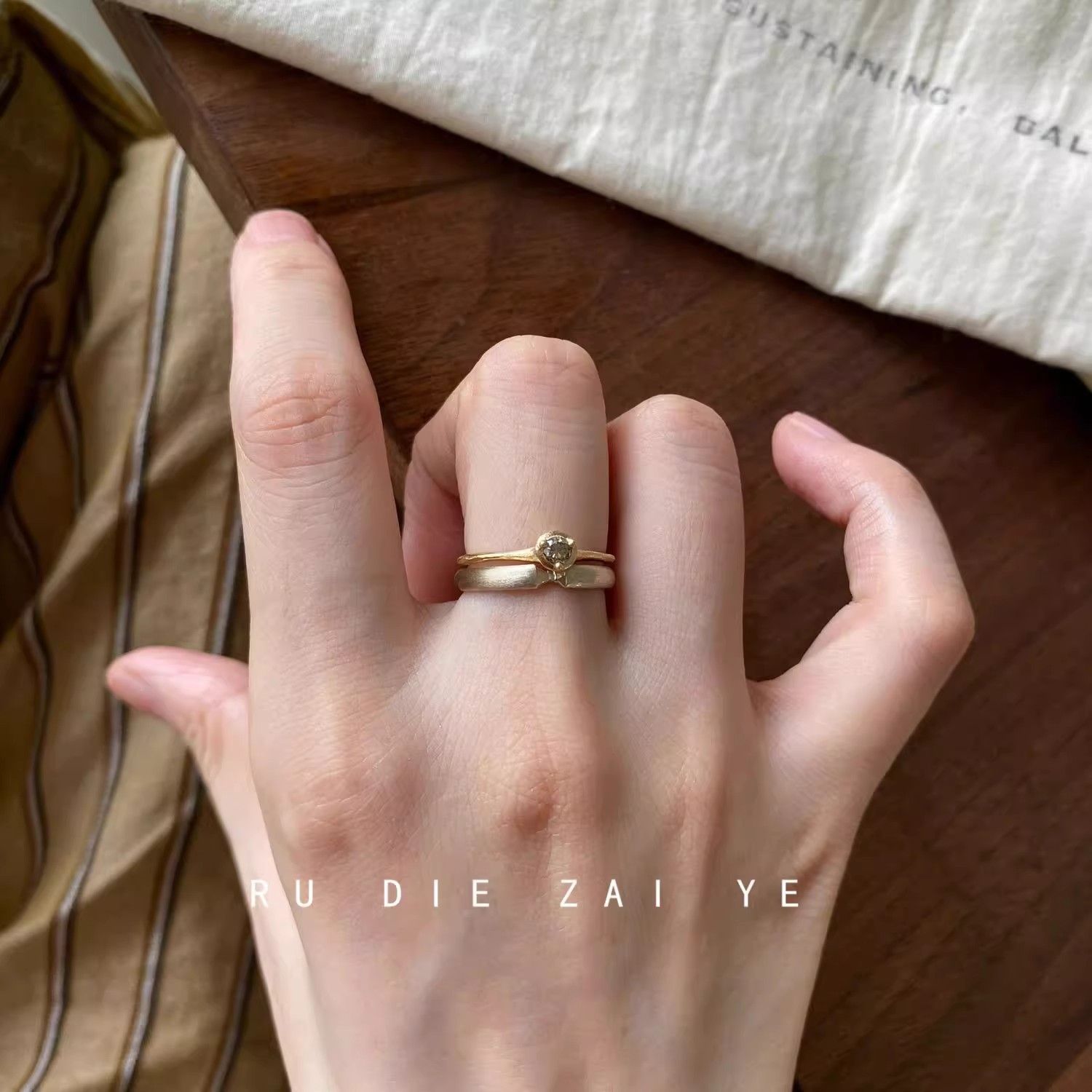 Ins冷たい風カラージルコンにチタン鋼の星の細い金の金色の色が落ちない指輪の女性のデザイン