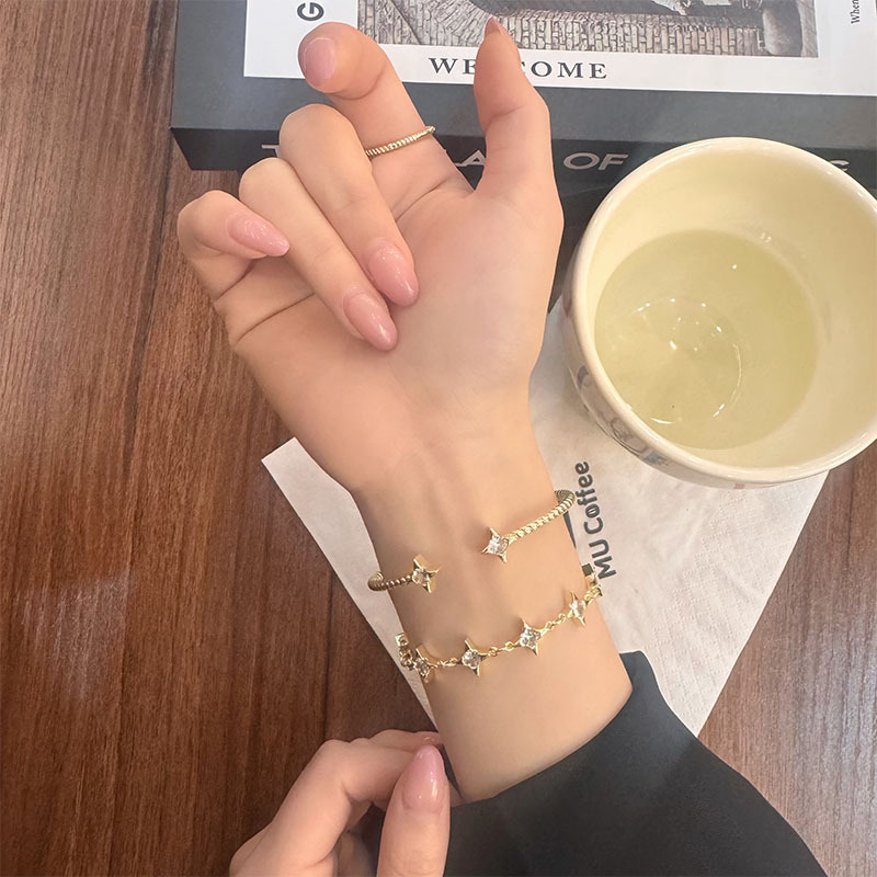 高颜値insブレスレットジルコン満天星女軽豪華四芒星小衆高級新作ファッションブレスレット