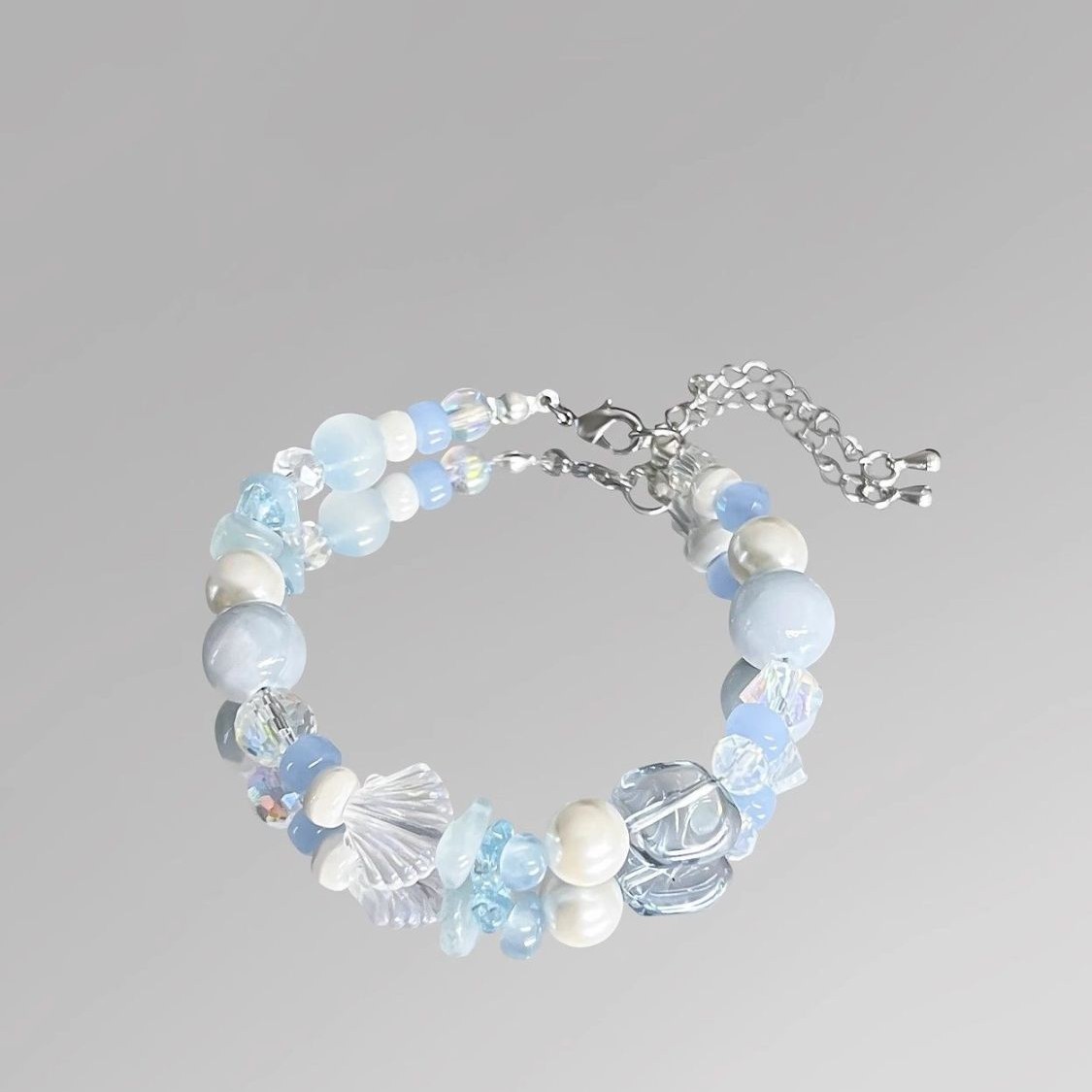 オリジナルの氷透明なシーブルーの気質、白い海の貝殻、絶妙な軽い高級ニッチブレスレット、女性の個性のハンドアクセサリー