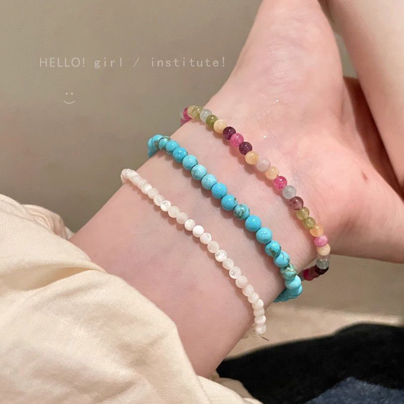 夏カラフルなトルマリンビーズブレスレット女性のための 2025 新しい天然石ブレスレット白マザーオブパール多層重ねブレスレット
