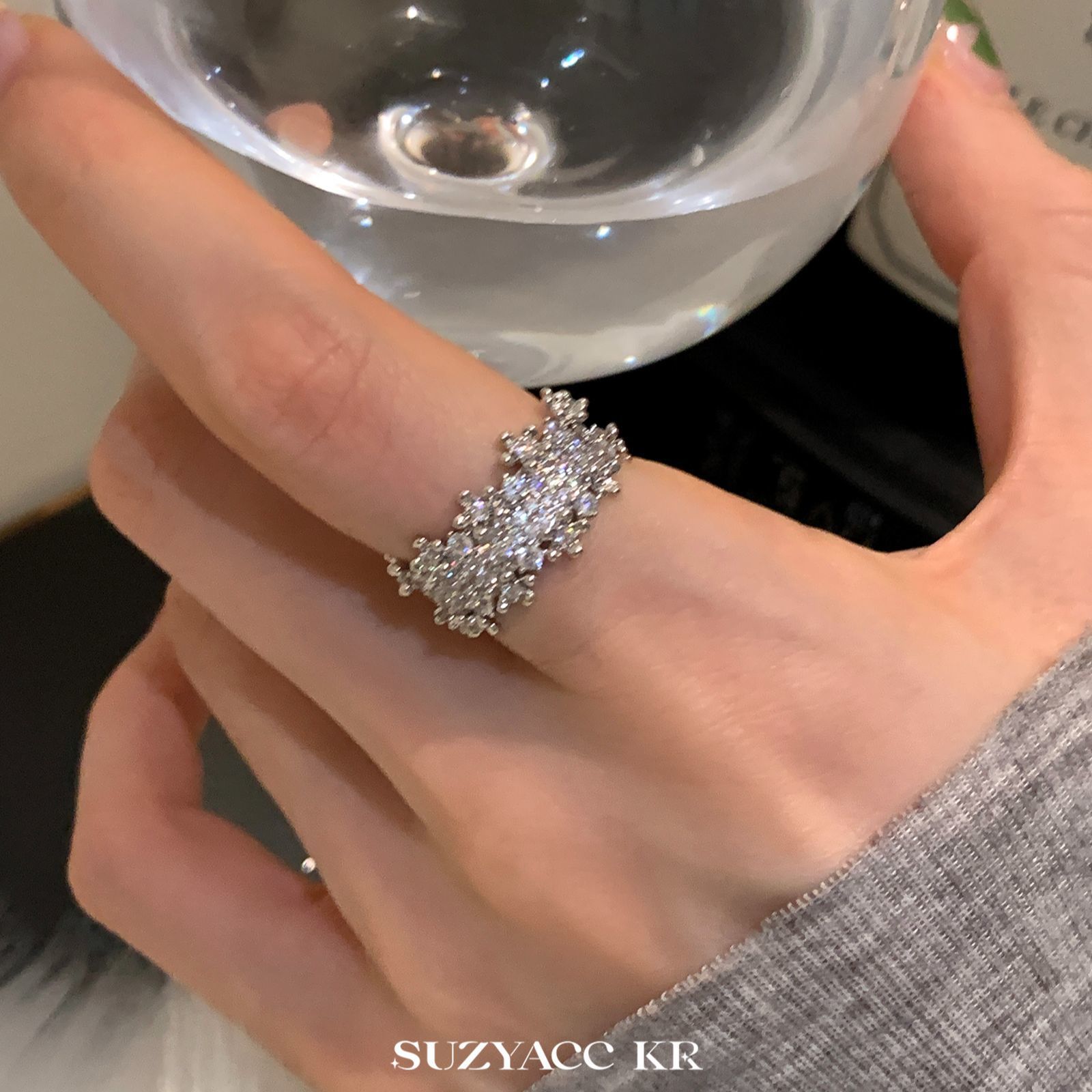 Suzyacc kr軽豪華超キラキラ星満ドリルジルコン指輪大衆デザイン感食指戒調節可能