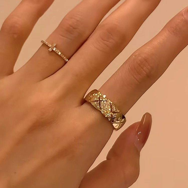 【光の探索】菱格高級リング 男女カップル向け レトロ18香風 指輪 新作 ローズライトラグジュアリーリング