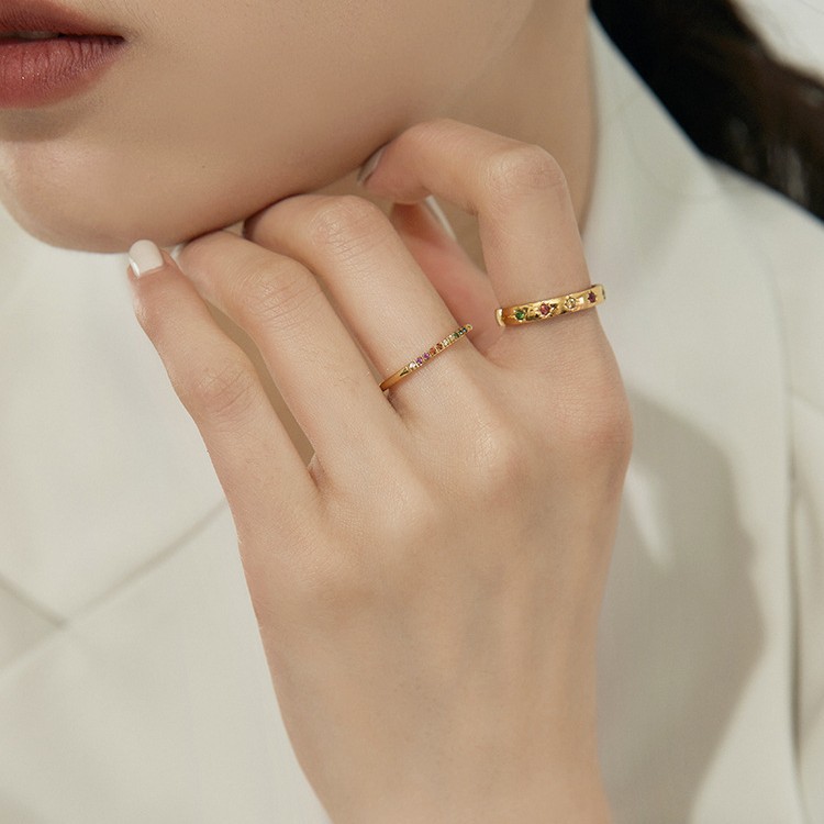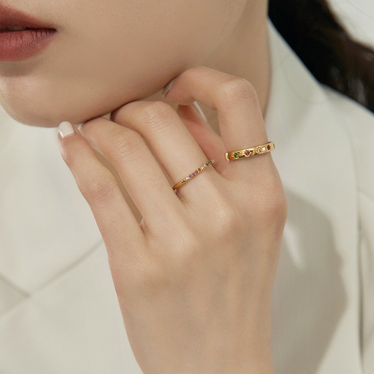 ちらつくレトロでシンプルな夏のカラードリルの組み合わせ日韓は高級指輪の指環を重ねて色落ちを防止します。