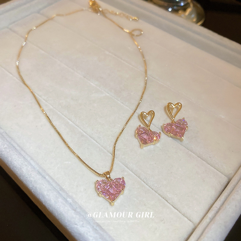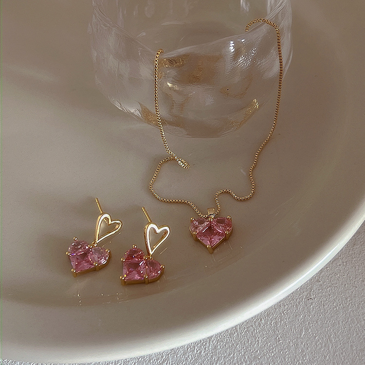 甘くて可愛いピンクのジルコンの愛のイヤリングのネックレスの女性の韓国の個性はシンプルです。