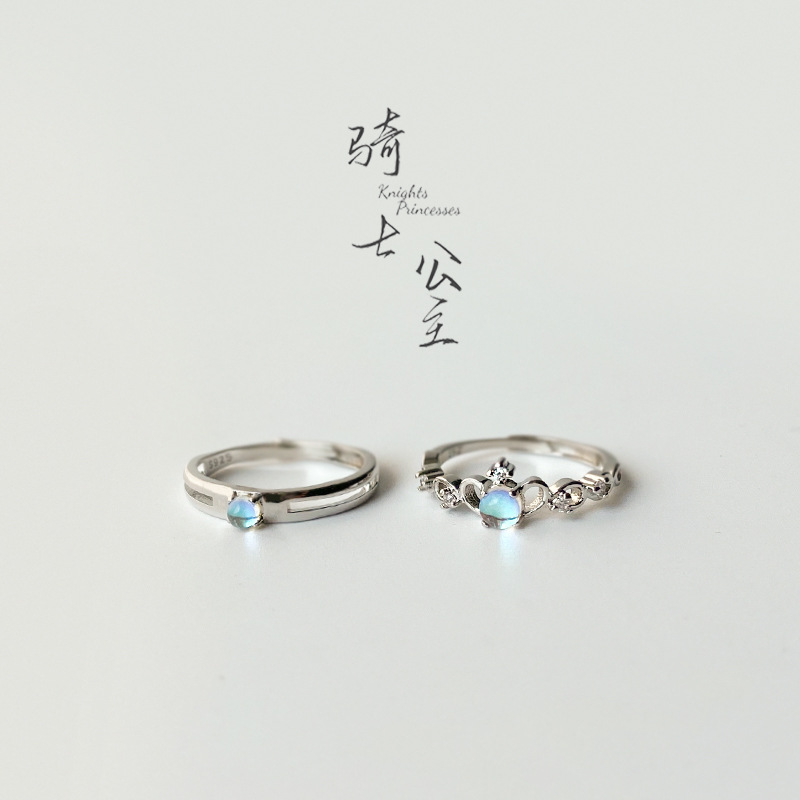 カップルリングs925シルバーリング男女月光石王女と騎士ロマンチックな童話指輪幸運なプレゼント