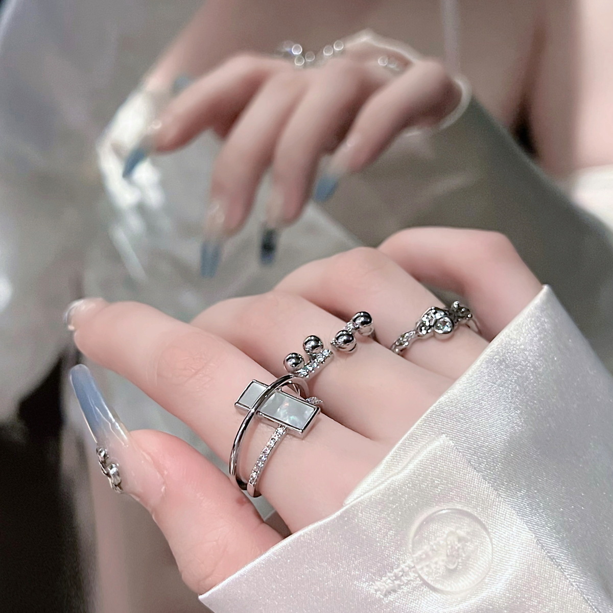小衆冷淡風デザイン不規則貝母ジルコン銀色系開口指輪