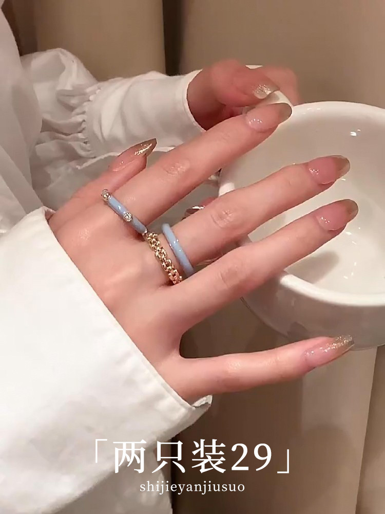 青い二重のオイルリングの指輪の小さい大衆の設計は軽くて豪華なファッションの口を開けて個性のinsの潮の指輪の女性の夏をやめます。