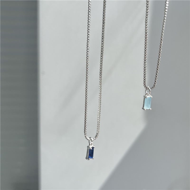 自留 ~ 韓代金海塩湖水緑宝石青方形ジルコンネックレス鎖骨鎖