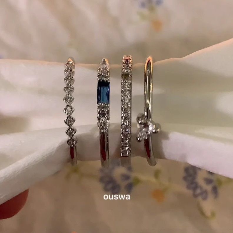 追光者の4種類の指輪、insの個性的な大衆は青いジルコンの愛を飾って指輪の尾戒をつけます。