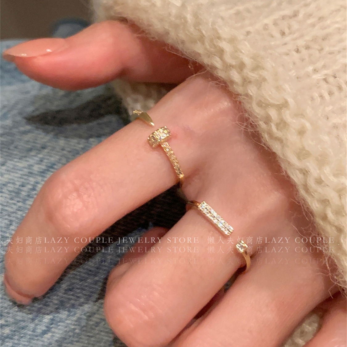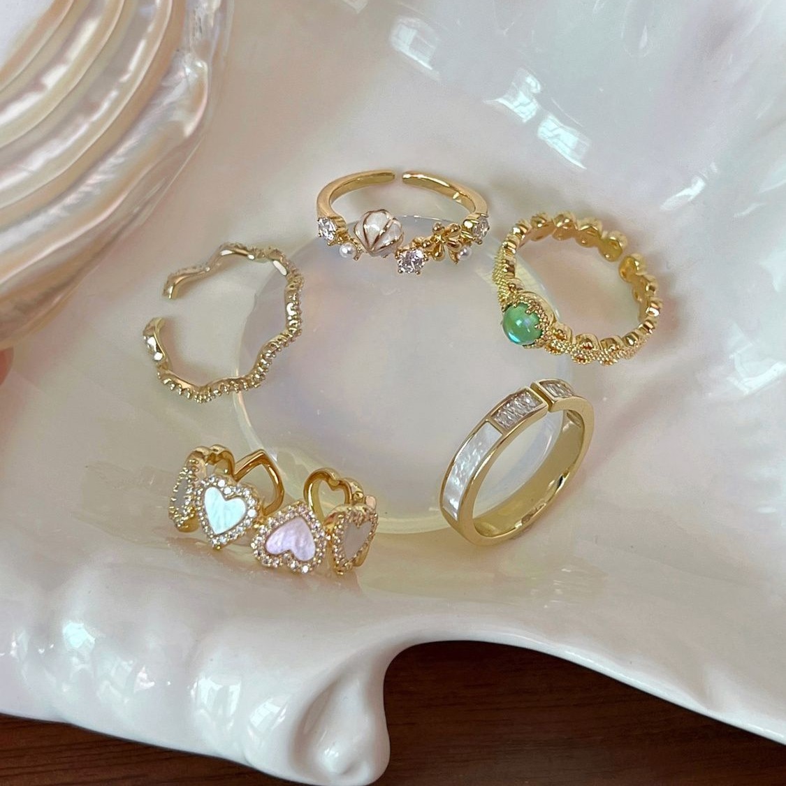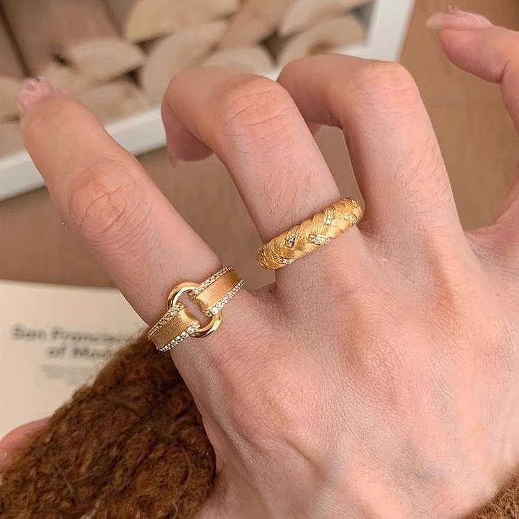 列ドリル小衆独特指輪2024新型爆金森系冷淡風高級貝母装飾重工指輪