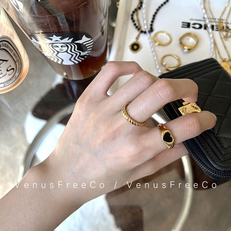 クール/女の子のフランス式高保色黒滴油開口愛ins細くて美しいねじリングを重ねて韓国を装着する