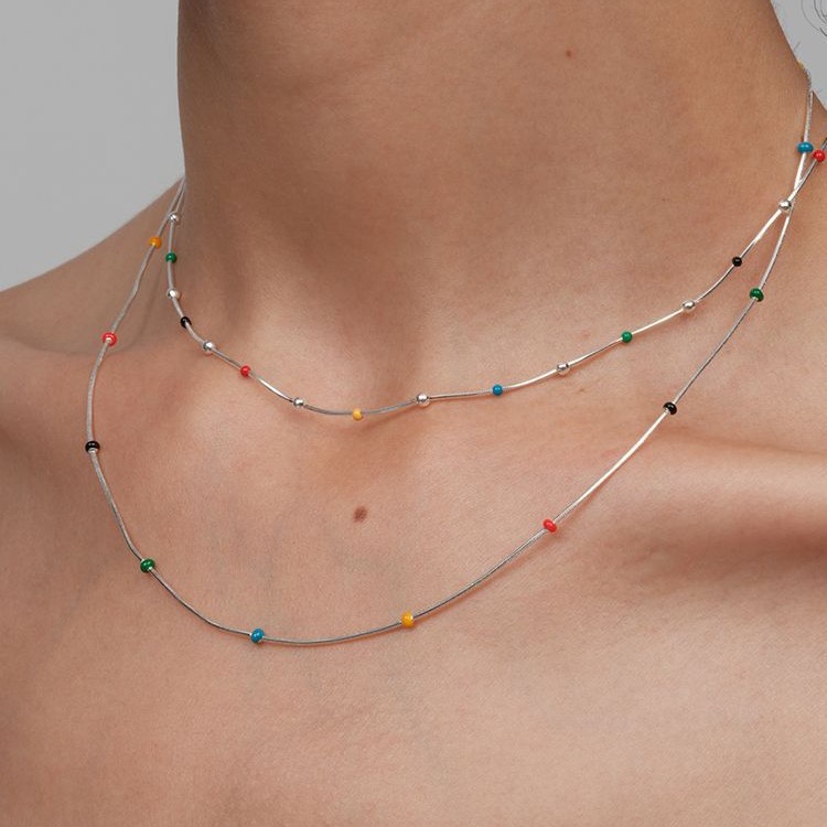 2025 新しいレインボービーンエナメルボールビーズスネークボーンチェーンシンプルでファッショナブルな鎖骨ネックレス